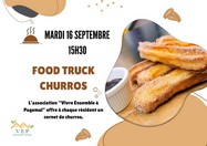 Un Food truck de churros viendra nous régaler le mardi 16 septembre. Ce goûter est offert par l'association Vivre Ensemble à Pagomal.